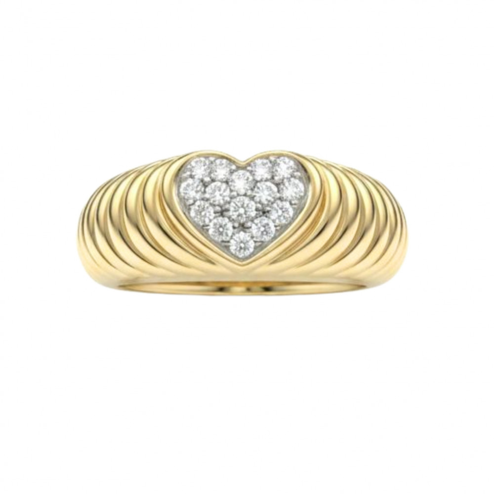 The Eternal Heart Diamond Ring is a perfect blend of elegance and emotion. Crafted in a sleek white metal finish, the centerpiece showcases a beautifully pave-set heart motif that sparkles with refined brilliance. The softly ribbed, sculptural band adds depth and contemporary character, creating a bold yet graceful silhouette.